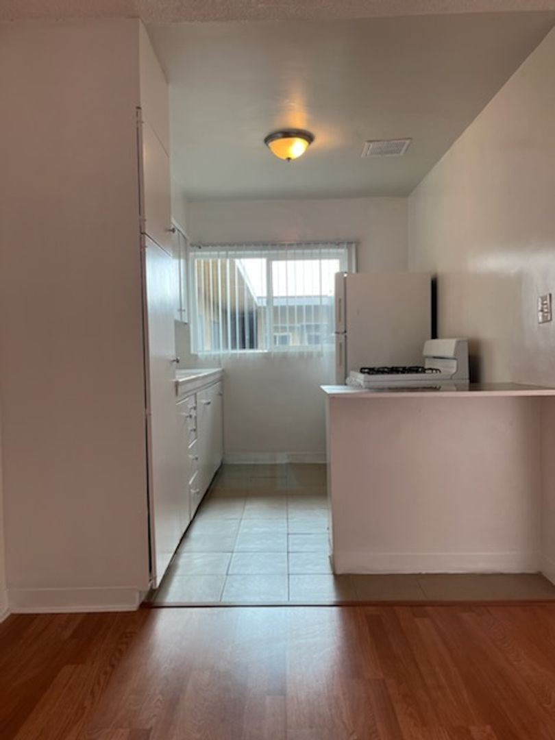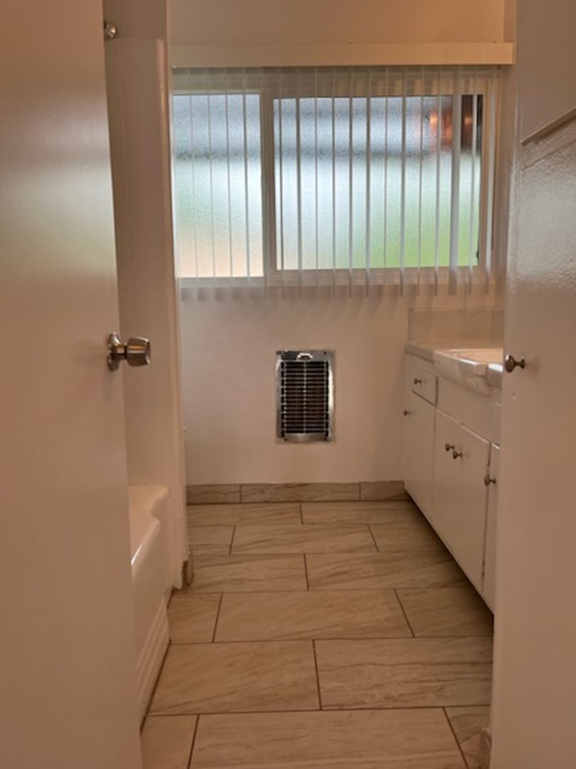 Welcome home to this beautifully updated 1-bedroom unit featuring new laminate flooring throughout and elegant tile in the kitchen and bathroom. The kitchen boasts charming tile countertops and top-of-the-line appliances — perfect for cooking and entertaining. The bedroom includes a generous closet and built-in shelving for added convenience and storage.