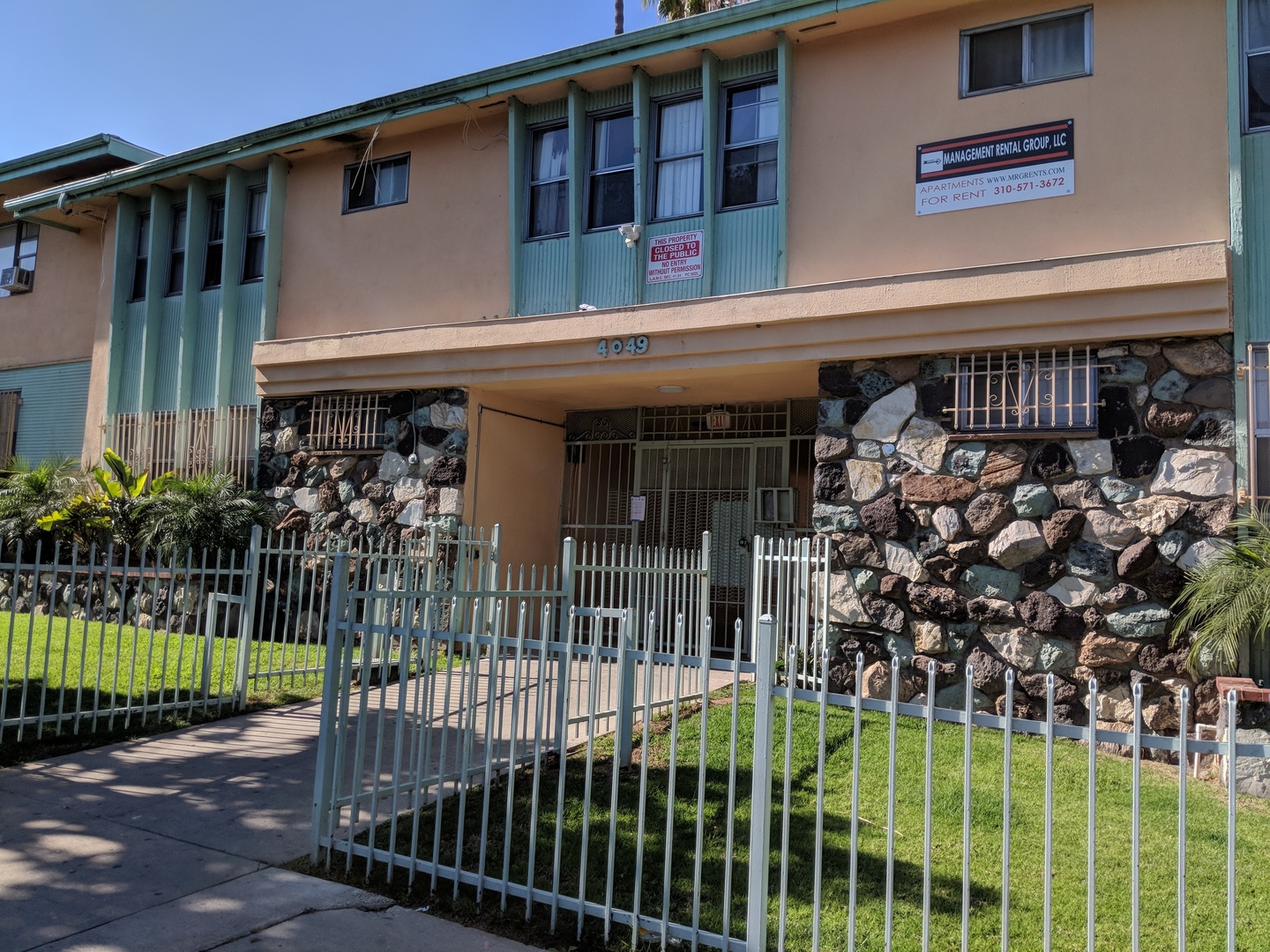 -Gated building with welcoming courtyard